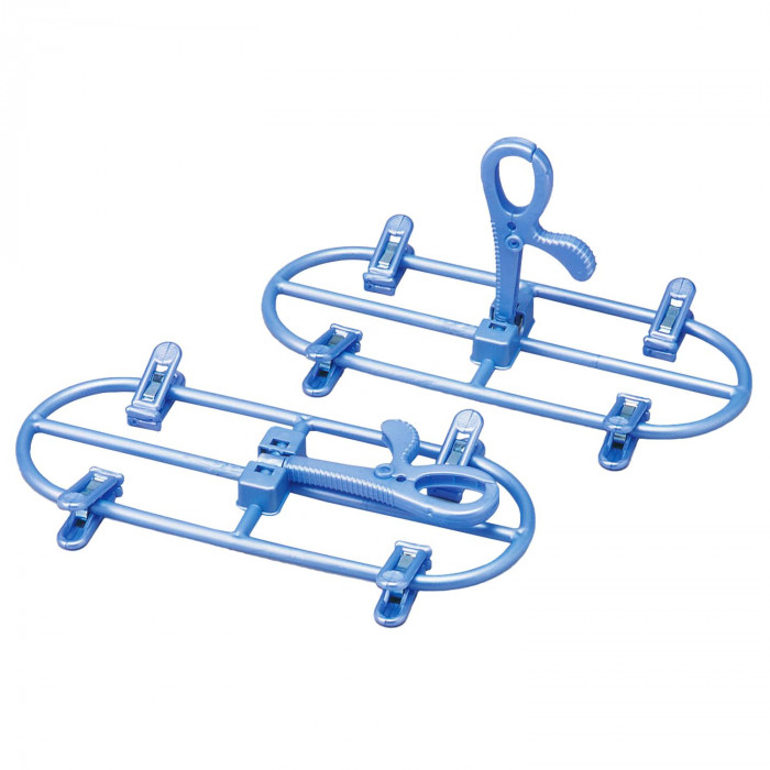 ジーンズやスカートを広げて干せるので厚手の生地でも早く乾きます。ピンチは洗濯物に合わせて移動可能です。クリップ部を倒すことができるので収納時に場所を取りません。【収納時サイズ】34×18×3.5cm |