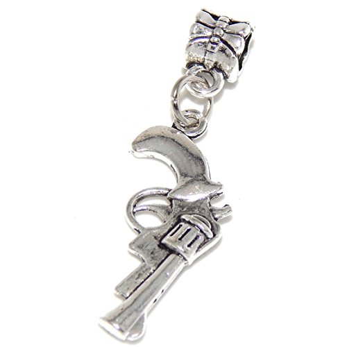 -. Title : GemStorm Silver Plated Dangling Antique Gun For European Snake Chain Bracelets