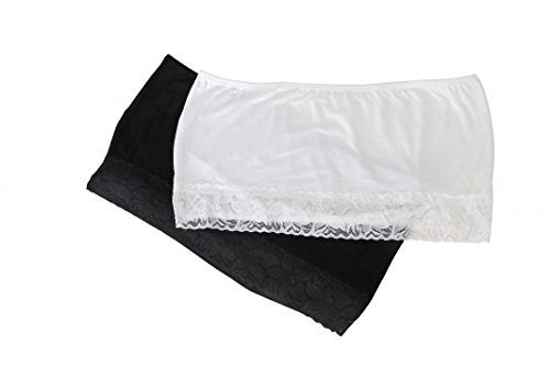 -. Feature : Material and Size. Made of soft modal.There are 3 size for your choice, available in black and white color. The package is 2 pieces totally, 1 piece for each color. / Strapless & Wireless Bandeau Bra. They are perfect for summer strapless or spaghetti string tops. And it is wire free, so you will not feel any uncomfortable although wear it for all day. / With cute lace. On the top of the tube top, it was decorated with the cute lace. It is super soft, very close to your body and will not makes you itchy for your skin. / Plus size and stretchy. There are 3 sizes available in 1X to 3X. The material is stretchable, it will not be out of shape after pulling hard. And it also will fit your body in prefect and comfortable condition. / Great air permeability and machine washable. It is breathable to wear in hot day and easy to clean after wearing for long time, you can wash and dry it by washing machine.