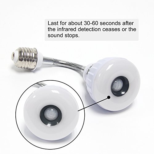 Signstek E27 Base Motion Sensor Led Bulb with Infrared Detector and Flexible Tube, Energy Saving Led Motion Sensor Light Bulb, 5 Watts, 400 Lumens, E26 Base, Warm White (3000K)
