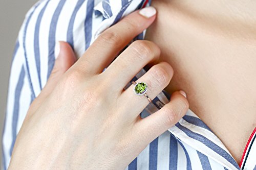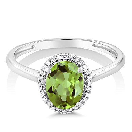 -. Title : 10K White Gold Diamond Halo Engagement Ring set with 1.33 Ct Oval Green Peridot (Available in size 5, 6, 7, 8, 9)