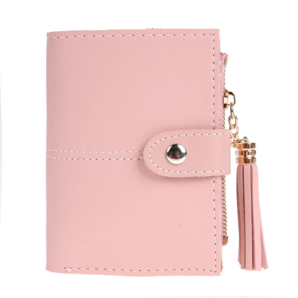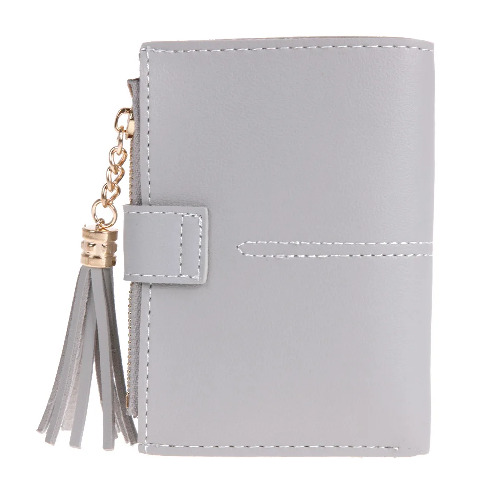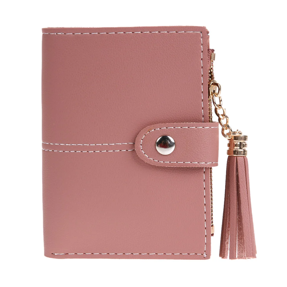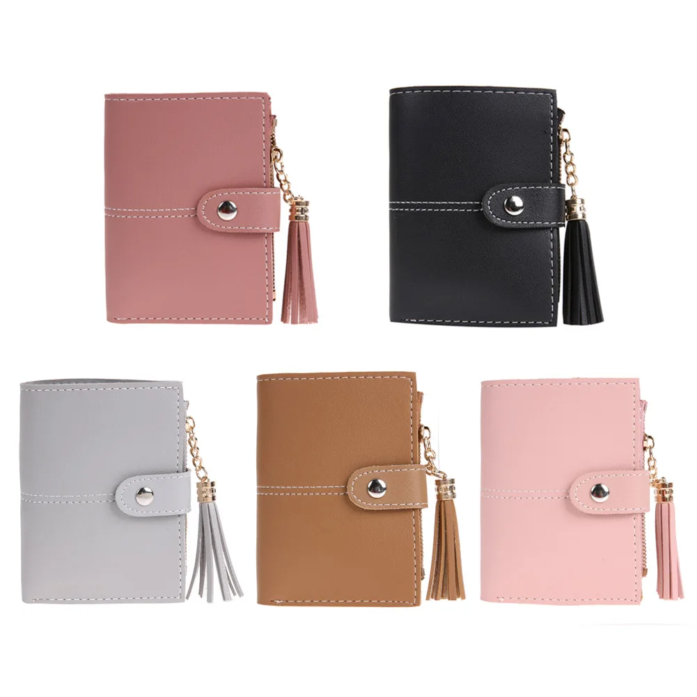 2017新しいファッション女性puレザーボタンタッセルショート財布カードコインホルダークラッチ財布