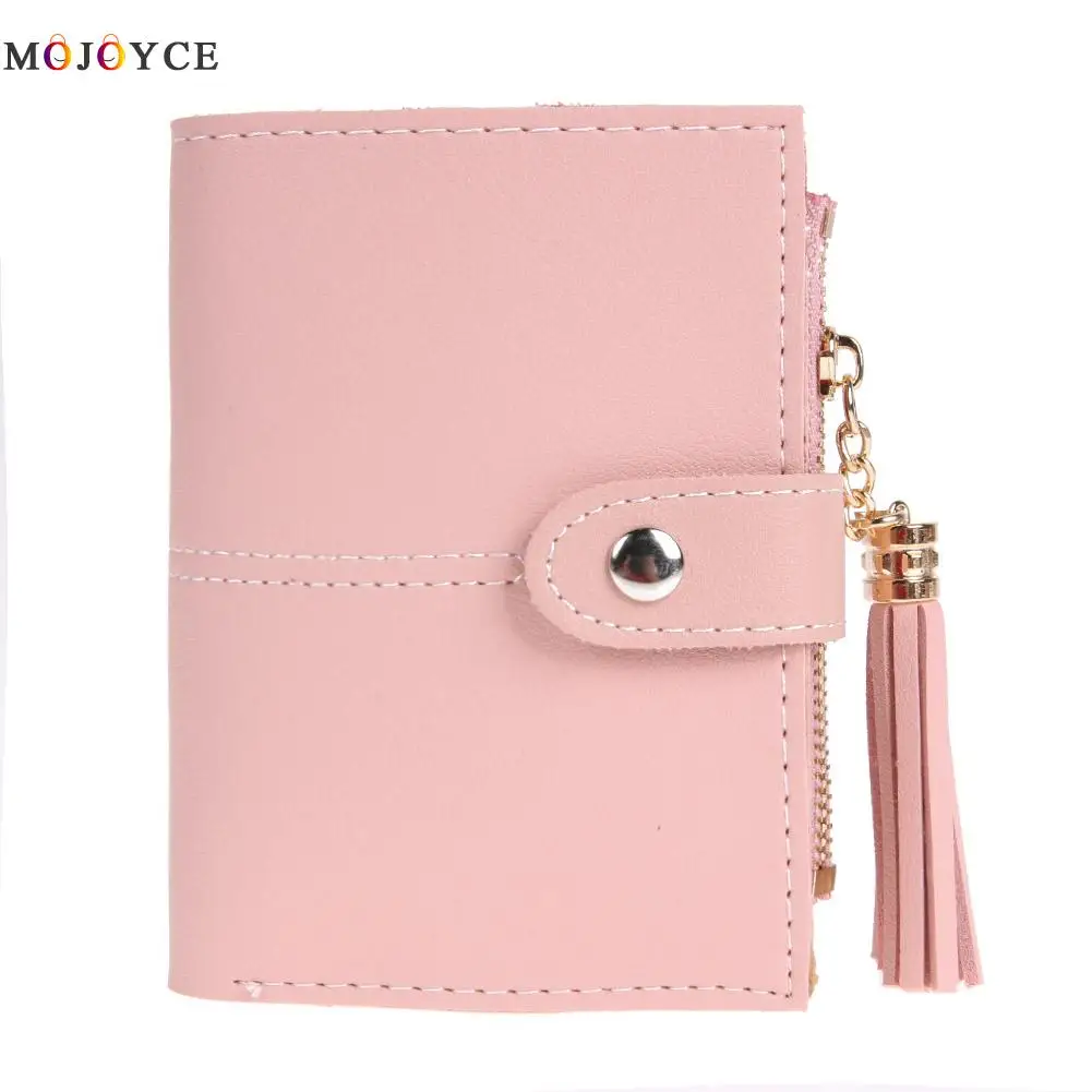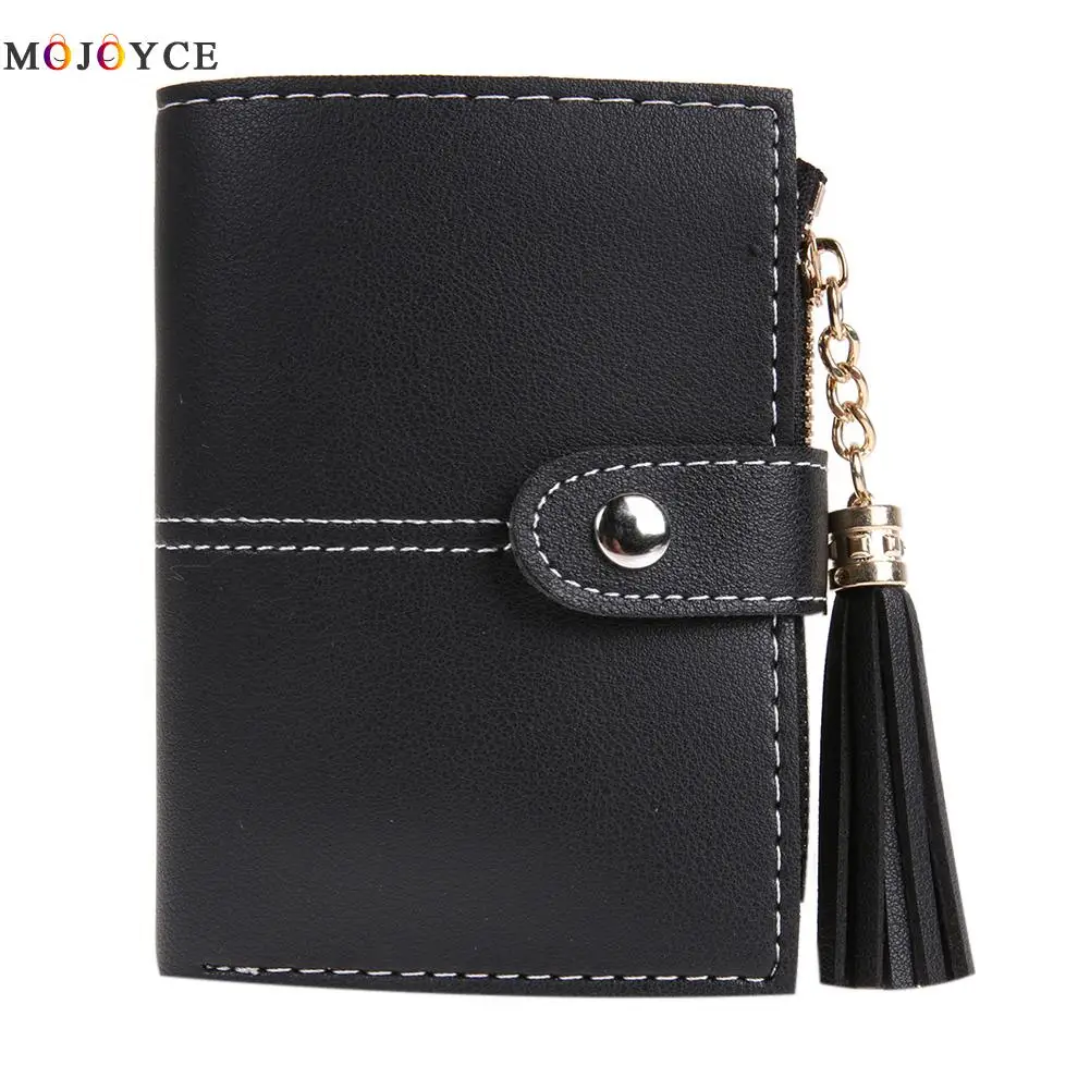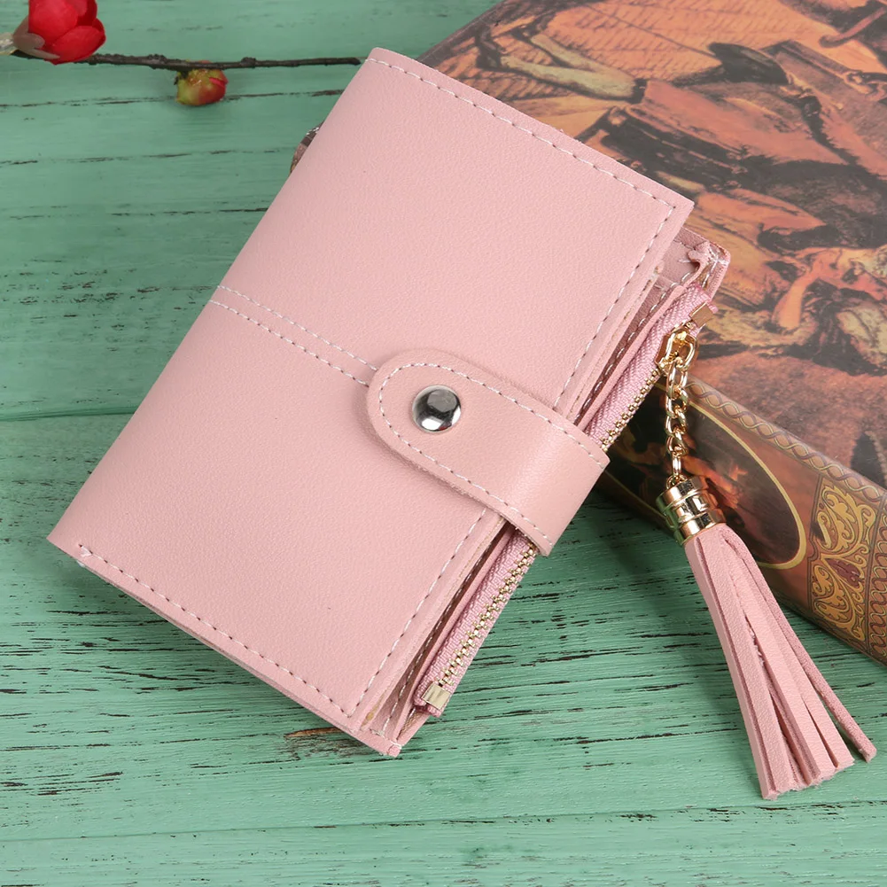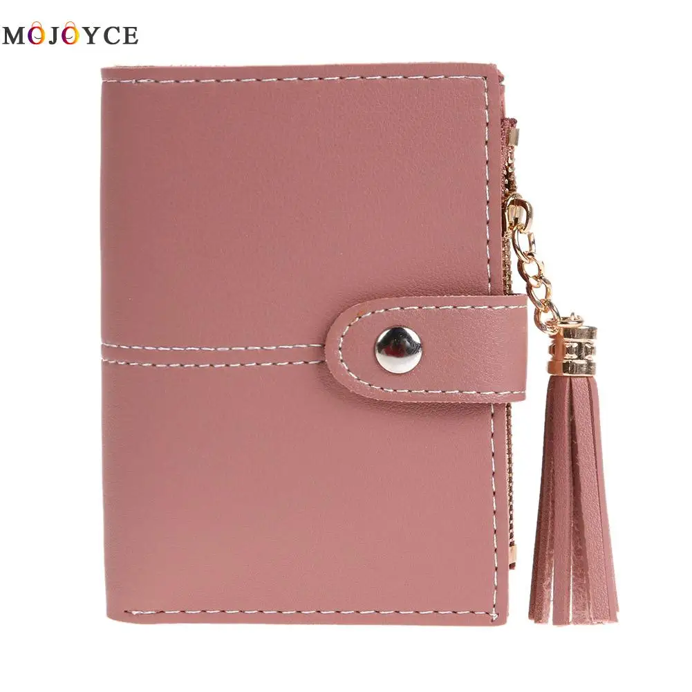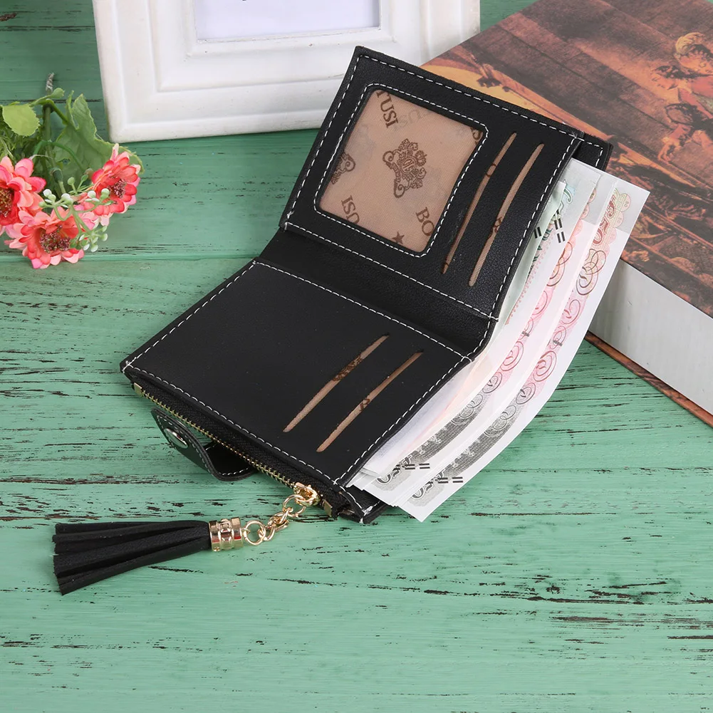 2017新しいファッション女性puレザーボタンタッセルショート財布カードコインホルダークラッチ財布