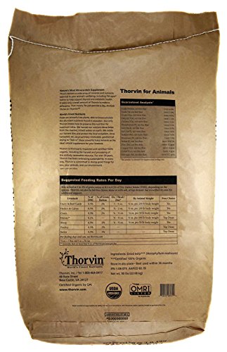 -. Feature : Thorvin for Animals is higher in total nutrients, particularly iodine, potassium, and specific amino acids / Organic kelp is harvested from the ocean around Iceland. Iceland's nutrient-rich waters are the purest on earth / It only takes small amounts of Thorvin to deliver a range of key vitamins and minerals not found in forages and grains. Mixed with 1-2% of the dry feed ration, Thorvin can deliver better overall health and productivity in your livestock. Plus, it can cut down on those vet bills to improve your profits! / Thorvin works by filling in micronutrient deficiencies and helping to support digestive, reproductive, and immune functions. Thorvin is bioavailable and readily utilized and only takes small amounts to supply benefits to livestock at all stages of life. / Harvested from the cleanest kelp beds on earth, off the coast of Iceland. Then its dried at controlled low temperatures using geothermal energy. Thorvin contains one-third less moisture, 30% more iodine, and is the only kelp supplement with a guaranteed selenium claim--for just pennies a day,