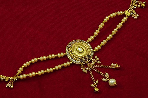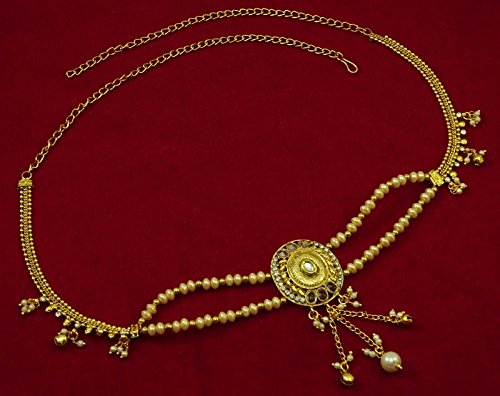 Studio : Matra Publisher : Matra Binding : Jewelry Product Description ? Exquisitely designed, this gold tone waist Sari belt for women from India, The Art of Jewelry will certainly add oodles of charm to your feminine look. Made from Alloy, this waist belt is superior in quality. ? Beautifully embellished with CZ And Kundan stones Along With Faux Beads . ? Base Metal: Gold Tone. ? Metal: Alloy. ? Care Instructions: Keep it dust-free dirt free in a plastic pouch. Remember to apply your hairspray, perfume, and cosmetics before putting your Jewelry on.