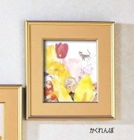 ちひろが描いた淡い色紙絵を豪華な金のフレームにセットしました。