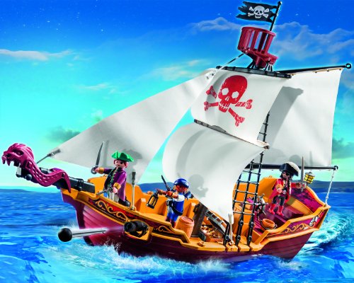-. Feature : Set sail for the high seas aboard the Red Serpent Pirate Ship / Outfitted with a serpent masthead and sails emblazoned with the jolly roger / Buccaneers can climb to the top of the crow's nest to keep a lookout for approaching ships / The functioning cannons makes it easier to protect the ship's booty / Includes three figures, ship, cannons, treasure chest, lanterns, swords, and other accessories