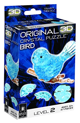 -. Binding : Toy -. Brand : Bepuzzled -. Department : Backyard Bird -. EAN : 7662558168507 -. Feature : The Bird 3D Crystal Puzzle from BePuzzled is a sleek, translucent, crystalline puzzle with 47 unique interlocking pieces / Take puzzling to a whole new dimension with this sweet design, inspired by nature / Enjoyable to work on, challenging to complete and beautiful to display / This 3D puzzle has a difficulty level of 2 and is fun for puzzlers age 12 and up / Approximate assembled size = 4-1/2" x 5" x 3" -. IsAdultProduct : 0 -. ItemPartNumber : 30946 -. Label : University Games -. Manufacturer : University Games -. Model : 30946 -. MPN : 30946 -. NumberOfItems : 1 -. PackageQuantity : 1 -. PartNumber : 30946 -. ProductGroup : Toy -. ProductTypeName : TOYS_AND_GAMES -. Publisher : University Games -. ReleaseDate : 2013-07-28 -. Size : One Size -. Studio : University Games -. Title : Original 3D Crystal Puzzle - Bird -. UPC : 023332309467 -. Warranty : 30 day warranty against manufacturer defects
