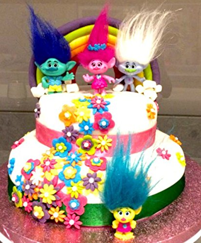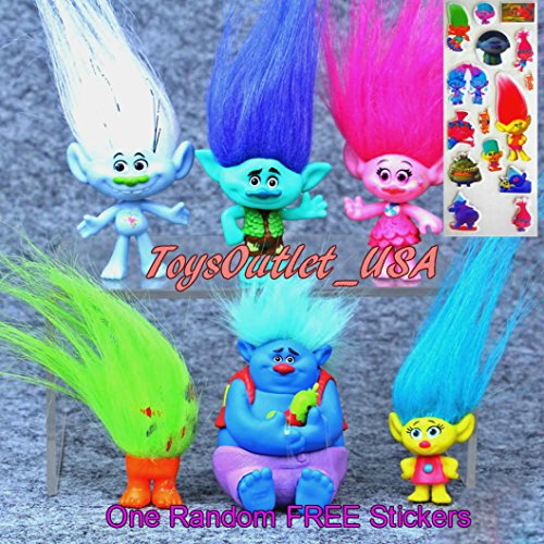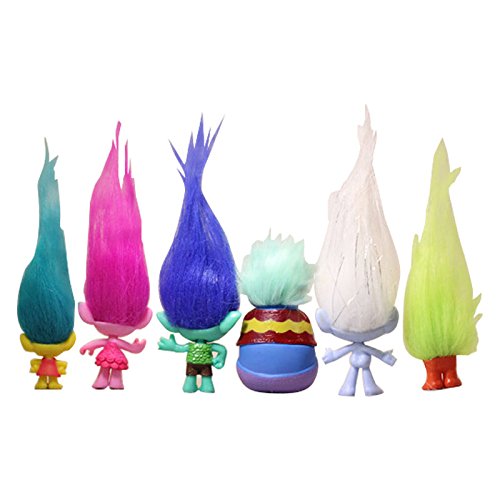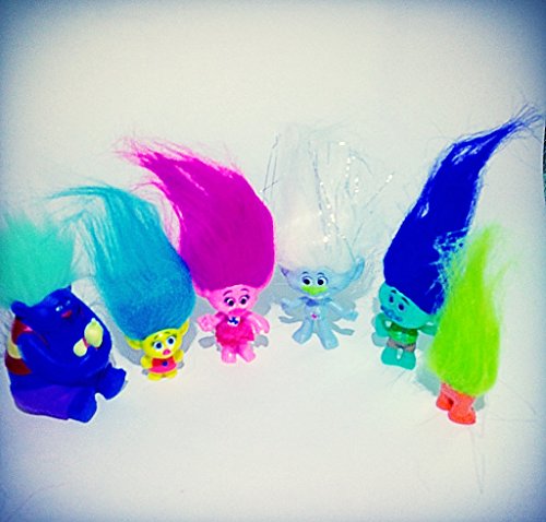 Fashion design,100% Brand New,high quality! DreamWorks Trolls Movie,Includes Poppy, Branch, Guy Diamond, Biggie, Smidge, Fuzzbert. 6 pcs/set 3-7 cm Material PVC, Colorful wild Cute Hair . Great Kids Birthday Gift, or Cake Decoration , Party FavorsFeature