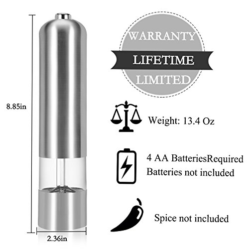 (ENGIVE)/Kitchen Dining/Cook's Tools Gadgets/DIRECT FROM USA/Electric Pepper Grinder or Salt Grinder Mill Battery Operated with Light At Bottom and Adjustab...