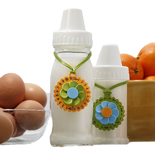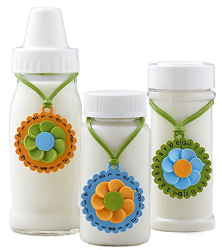 No more tape and pen, no more sticky notes that smear and fall off, no more grease pencils. Just dial in the day (and time if you want to be exact), hang the MilkCharm on the bottle, put it in the fridge, and go take a nap! The time side also works great for storing milk at room temperature, formula in the fridge, or for bottles that baby didn't finish drinking. Plus, the MilkCharm can be used for tracking the freshness of baby food and many other food items long after you're done breastfeeding. • Works with ANY bottle • Double sided dial tracks time and day • Also great for formula, baby food, and many other food containers • Made from food grade polypropylene and silicone, BPA and phthalate free materials • Reusable • Dishwasher safe - top rack • 100% recyclable and made with as much recycled material as we can get our hands on • Made in the USA in the San Francisco Bay Area • Pack of 3 - features three attractive color combinations • Makes people and their refrigerators happy • UL tested • Patents pendingFeature