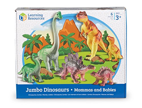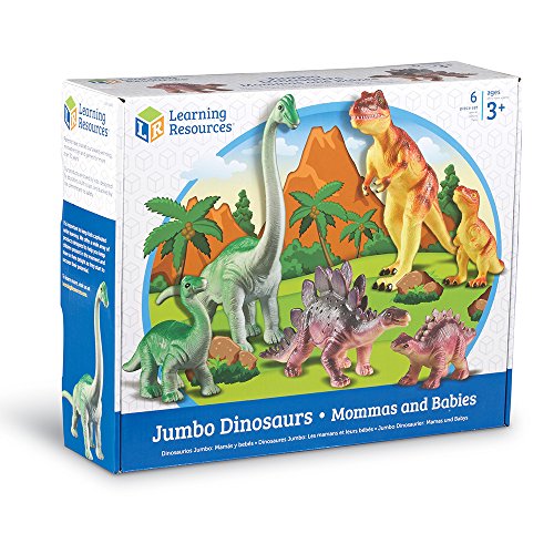 Family fun-back in time! Little ones will enjoy pairing these babies with their mommas, including a T.rex and baby T.rex, Stegosaurus and baby Stegosaurus, and Brachiosaurus and baby Brachiosaurus. Set of 6 realistically detailed dinosaurs invite hours of imaginative play and early vocabulary development. Durable plastic dinosaurs are sized just right for small hands and can be wiped clean. Largest animal (momma Brachiosaurus) measures 11″L x 93/4"H. .Feature