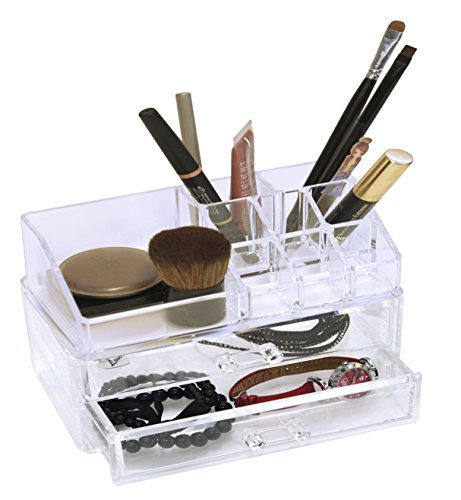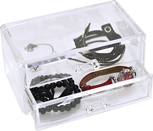 EVIDECO 6766101 BOREAL Bathroom Jewelry and Cosmetic Storage Display Box 2 Drawers Clear Acrylic