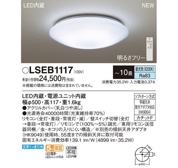 ●光源:LED(内蔵、昼光色タイプ)、色温度:6200K、光源寿命40000時間(光束維持率70%)