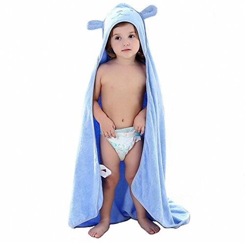 Kids Bath/Beach Towel with Hood Cotton 90x90CM Soft Towel for Baby Blue
