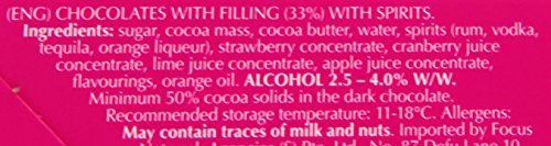 -. Feature : Dunkle Schokolade mit Original-Spirituosen als zarte Cremefüllung / Kombination aus bekannten Marken und beliebten Cocktail-Klassikern / Ein passender Mix für viele Gelegenheiten / 16 kleine Fläschchen, einzeln verpackt / Zum Verschenken oder Selbergenießen
