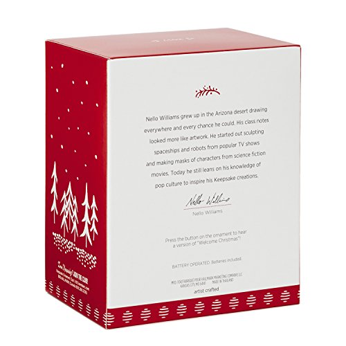 Press the button on the ornament to hear a version of the song "Welcome Christmas"! This Hallmark Keepsake Ornament measures 2.9 x 3.6 x 1.9 inches and comes in a 4 x 5 x 2.9 gift box.