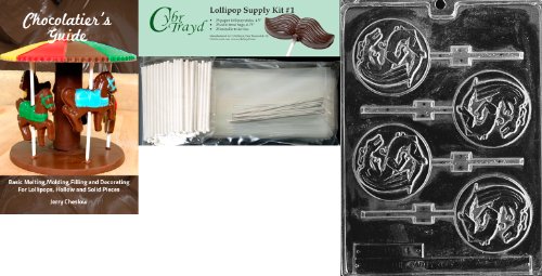 Cybrtrayd Chinese Dragon Lolly Chocolate Candy Mold with Chocolatier's Bundle, Includes 25 Lollipop Sticks, 25 Cello Bags, 25 Silver Twist Ties and Chocolatier's Guide