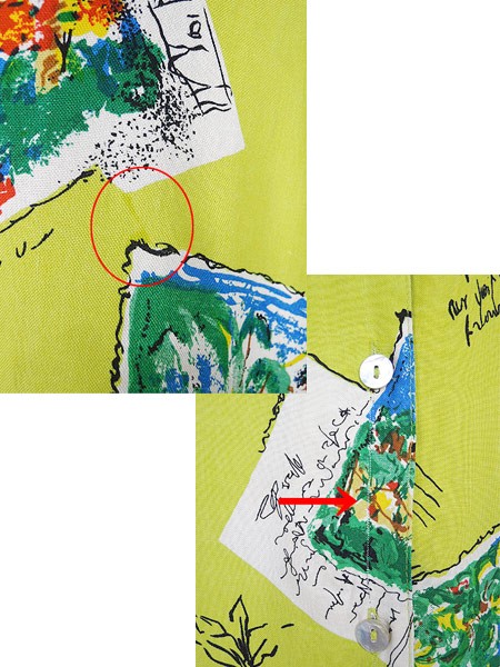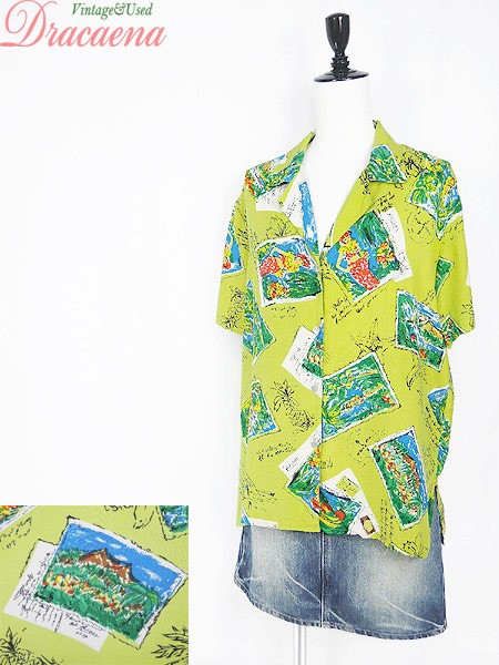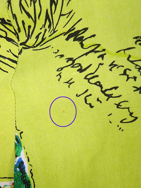 Ladies ブランド- カラー黄緑 メール便不可 コンディション★★★ 素材シルク 表記サイズS スタッフコメント右胸付近にヨゴレ。前立全体に糸引きダメージ。左胸下付近に薄いシミあり。素材の表面全体にネップあり、素材の自然な素朴な味としてご理解いただけましたらと思います。 実寸サイズ 着丈 65 cm 身幅 53 cm 肩幅 41 cm 袖丈 22 cm ※ウエスト・ヒップ以外は平置き採寸