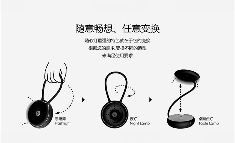 三档亮度调节,可做手提灯,小夜灯,桌面台灯;内置锂电池,超长续航