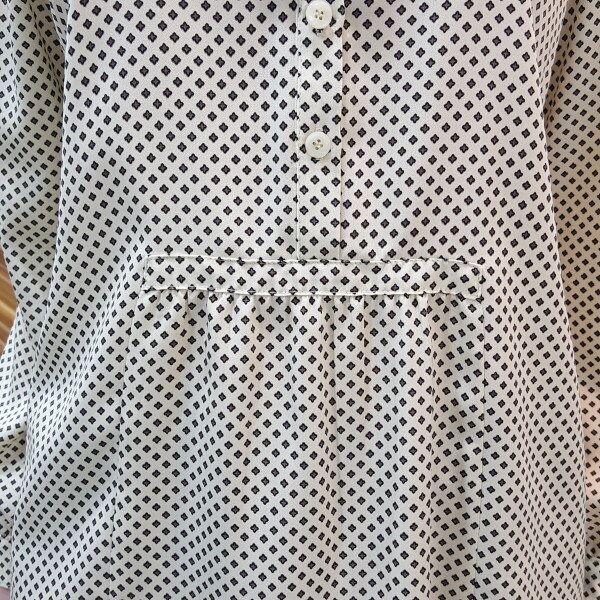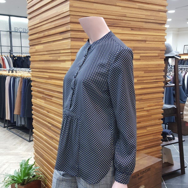 라운드넥에 루즈한 핏 감으로허리라인이 안들어간 블라우스에요폴리100%로 구김이 잘 안가며 실용적인 상품 입니다^^