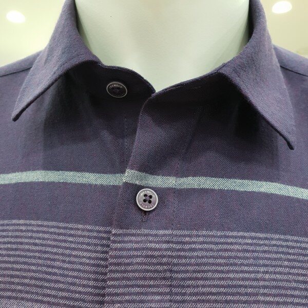 . 바이올렛 컬러가 베이스인 기본 핏의 편안하게 착용 가능한 남방입니다. 가슴 부분 배색 포인트를 통한 캐주얼한 스타일입니다