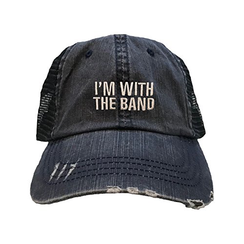 | (Go All Out Screenprinting)/Accessories/Hats/DIRECT FROM USA/Go All Out Screenprinting Adult I'm With The Band Embroidered Distressed Trucker Cap |