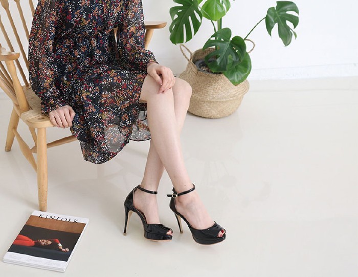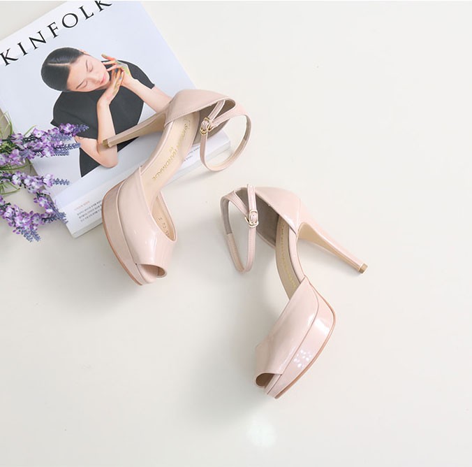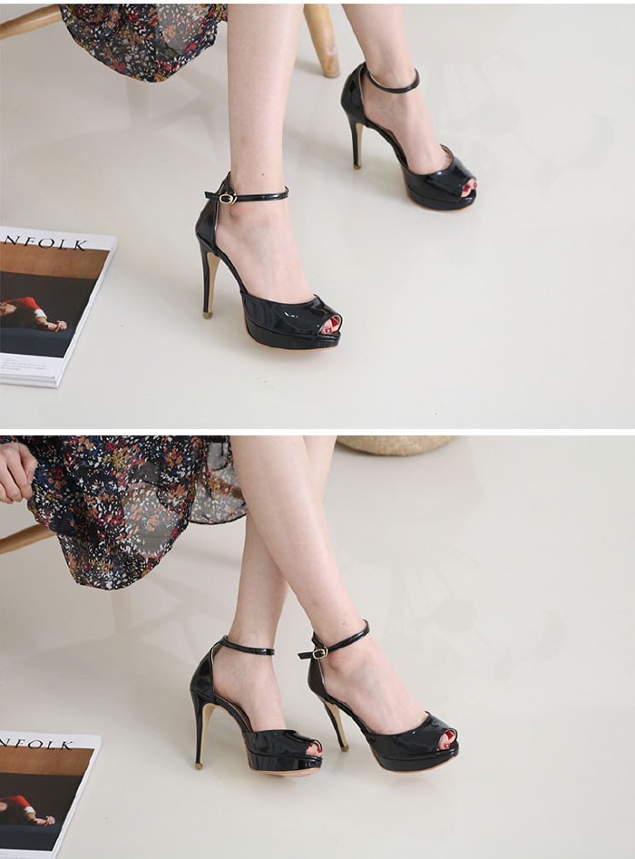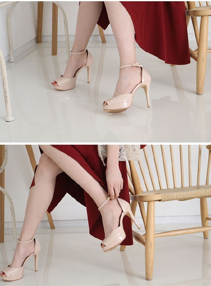 商品名:パンプス レディース アンクルストラップ ピンヒール オープントゥ プラットフォーム エナメル 2018 春 ファッション 靴 婦人靴