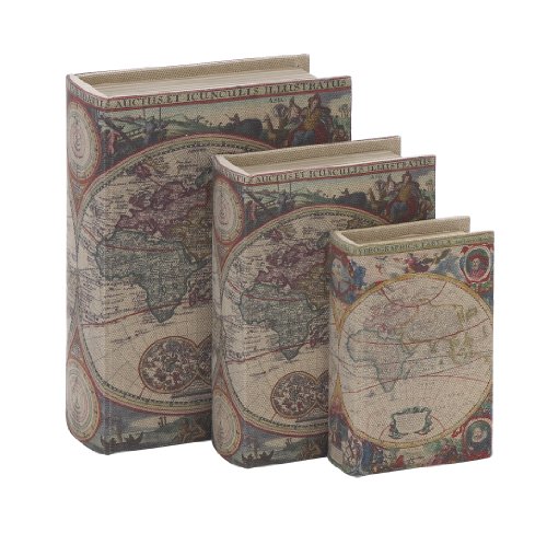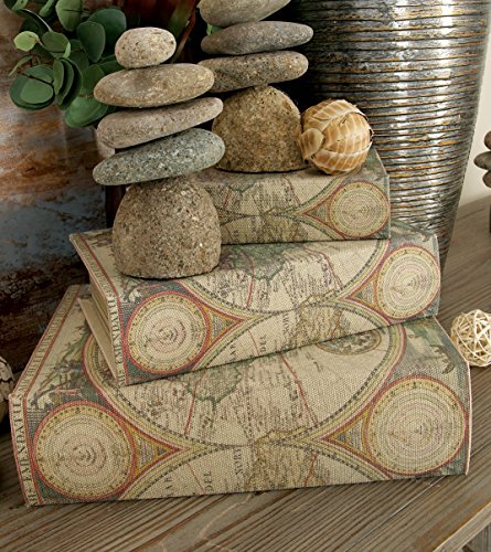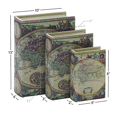 Deco 79 Wood Fabric Book Box, 13 by 11 by 8-Inch, Set of 3