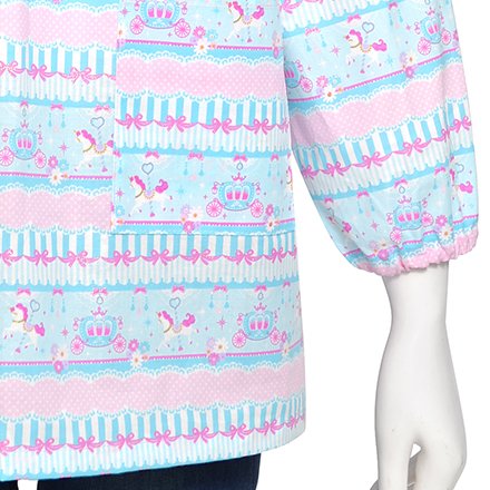 レースやリボンに囲まれた白馬のメリーゴーランド。優しいパステルブルーに彩られたストライプやポルカドット、そしてキラキラ輝くラメが可憐な印象です。