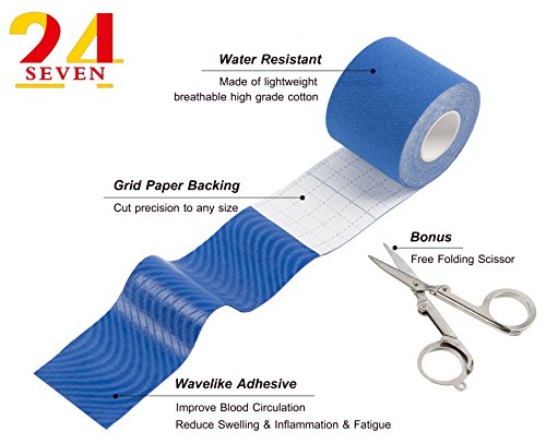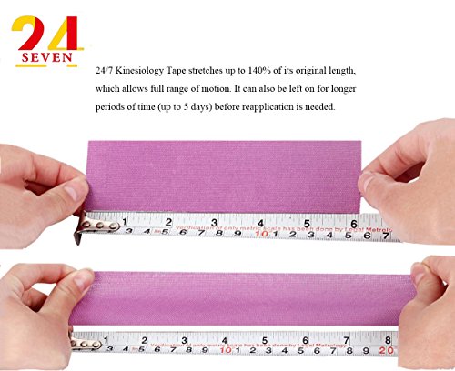 - -SUPPORT AND PERFORMANCE 24/7 Tape facilitates muscle contraction, assists joint motion and stability. Beginners and professionals alike will love this 24/7 tape as it is easy to use , and tough enough for the most demanding workout and strength conditioning. Building muscle, performance enhancement and flexibility are all attainable by using this 24/7 High-performance Kinesiology tape during your existing exercises.