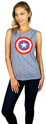 A light and airy sleeveless tank top perfect for those warm days and drapes gracefully on your skin. Either featuring a distressed Captain America shield or a group shot of all the Avengers