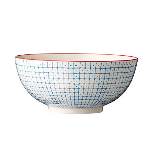 Bloomingville Ceramic Carla Bowl with Cream Background, Blue/Red Trim