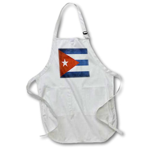 3dRose apr_28238_1 Cuba Flag-Full Length Apron with Pockets, 22 by 30-Inch, White