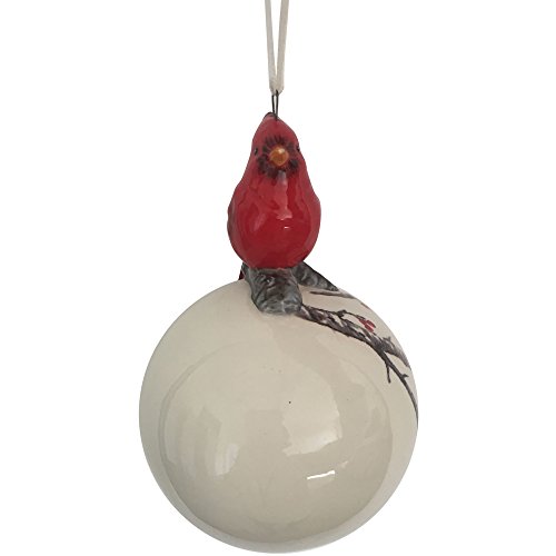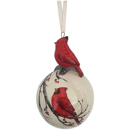 Comfy Hour 5" Red Cardinal On Ball Red Cardinal Decal Hanging Ball Christmas Tree Ornament, Red & White