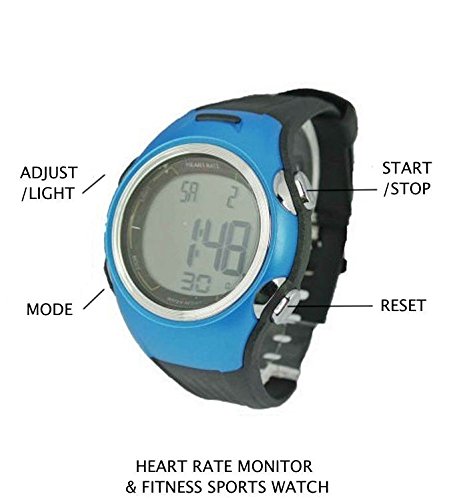- Feature : Stylish designer heart rate monitor and fitness sport watch (<0.6" thick and < 1.6 oz. light) for ALL your training needs regardless of age, sex and weight / Includes heart rate chest belt (2 oz.) made of a comfortable elastic band and soft polyurethane strap that adjusts to most body types / 3 selectable heart rate zones to workout at your own pace and intensity - [1] 55-70%: sustain healthy heart and lose weight, [2] 70-80%: develop endurance and stamina, [3] 80-100%: increase muscle strength / Graphical heart rate (max/%) display with arrows showing if you are in/out of zone / EL backlight display with audio/visual alarms, timers and stopwatch plus, a best limited & replacement service warranty (over any manufacturing defects)