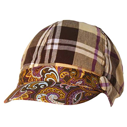 Studio : Luxury Divas Publisher : Luxury Divas Binding : Apparel Product Description This cadet newsboy cap has a fun and stylish print that consists of classic plaid and colorful paisley. The cap features a hidden sewn elastic in the back that can stretch to accommodate just about any head. The stylish brim on this cap is flanked by like material buttons on each side. Made to be lightweight, this cadet cap is packable and ready for travel. This newsboy cap is made from comfortable cotton.