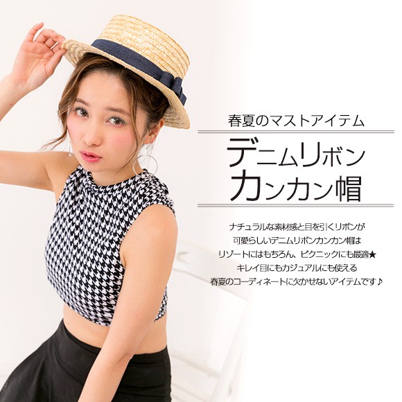 デニム素材のリボンがアクセントになってこなれ感たっぷり♪