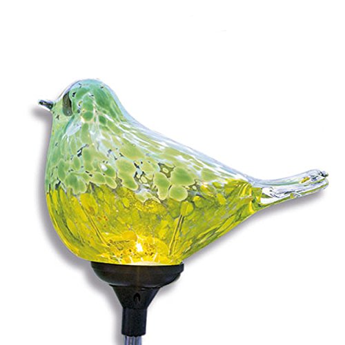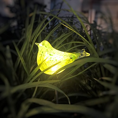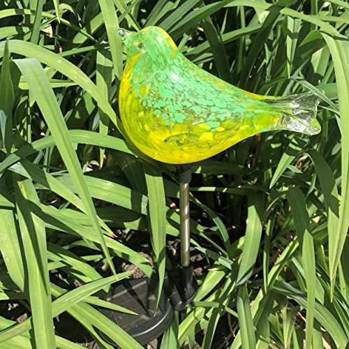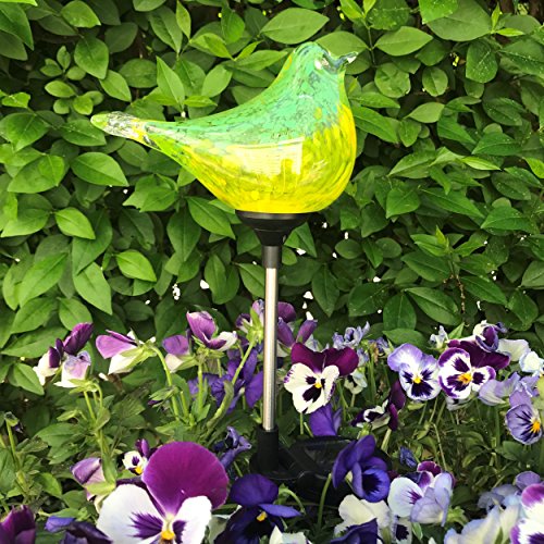 - CRAFTED BY HAND by our expert artisans, each bird is made of beautiful multi-colored glass and then mounted upon the stake. These solar stakes will install in just seconds and their high quality waterproof housing ensures that they can withstand the harsh elements on the outdoors. Place it on your garden landscape, yard, balcony or pathway to add a pop of color at night.