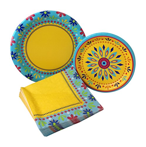 Painted Pottery Fiesta Party Bundle with Paper Plates and Napkins for 8 Guests
