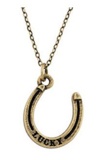 -. Feature : The horseshoe is highlighted in a vintage gold tone and engraved with "Lucky." / Carried on a 20" cable chain. / 100% lead-free pewter. / 7/8"H x 3/4"W.