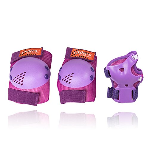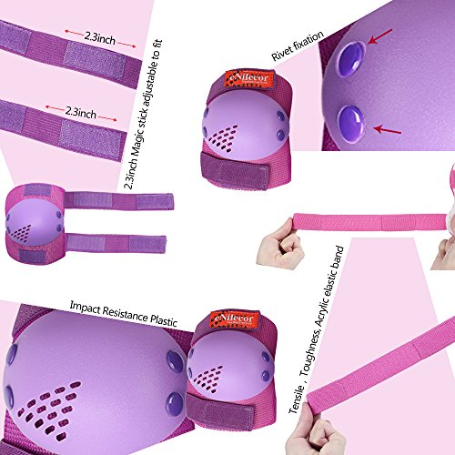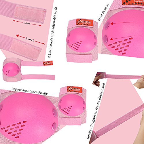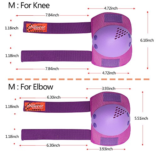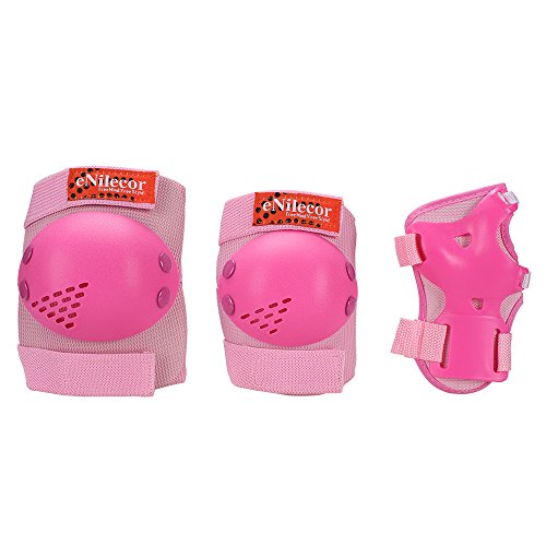 -. Feature : eNilecor offer the good quality product, Adjustable elastic straps and long velcro for secure,The thickening desgin will be good protection during sport,soft EVA padded material with plastic plates is breathable and durable / Packagae include: 2pcs knee pad, 2pcs elbow pad, 2pcs wrist pad / Special design for children/kids,It is the good choice as the gift for Children's Day, Christmas, Birthday,etc / Good for boys and girls multi sports: Inline roller skateboarding skating cycling BMX bicycle scooter ,etc / We do not authorize any other sellers to sell our products, some sellers sell this item with the bad quality product, so please look for our trademark, if you buy a fake, please report to the Amazon to protect you