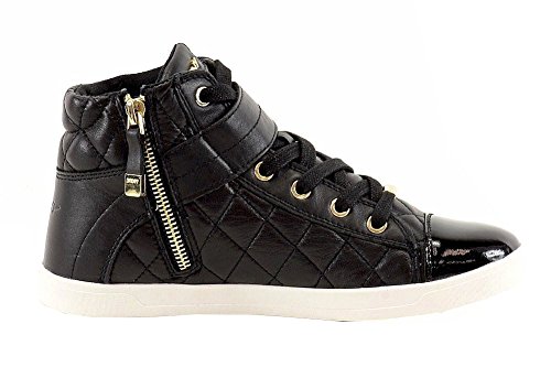 Product Description Quilted leather DKNY sneakers balance a casual silhouette with polished hardware. Patent cap toe. Velcro® strap over lace-up closure. Exposed side zip. 0
