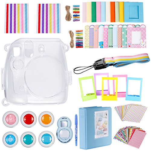 -. Feature : キット内容:(1)透明カメラケース+(1)青いアルバム+(1)自撮りミラー+(6)カラーフィルター+(5)カラーフレーム+(20)壁掛けフレーム+(40)ボーダーステッカー+(2)コーナーステッカー+(1)ペン+(1)ストラップ。 / 互換性:Fujifilm Instax Mini 8/ 8+/ 9 インスタントカメラに対応。家族、お友達へのプレゼント選びの参考にできます。 / 透明カメラケース:良質の材料としっかりとしているデザイン。ホコリ、キズ、ダメージなどからカメラを守ります。 / 自撮りミラーとフィルター:写る範囲が確認できて自撮りも思いのまま。六個のカラーフィルター(オレンジ、赤、青、緑、ピンク、円形カットアウトの青)特定の色を強調するための最もラクな方法。ネットに投稿する前にいくつかの新しいカラーフィルタを試してみてください。 / 楽しめるDIY:これらのアクセサリー(壁掛けフレーム・カラーフレーム・ボーダーステッカー・コーナーステッカー・ペン)を利用して写真をキレイにDIYするのに最適。発想力を活かせて自分なりの写真を作ってみてください。