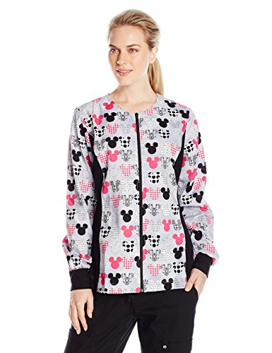 Cherokee Women's Tooniforms-Disney Zip Front Knit Panel Warm-up Jacket