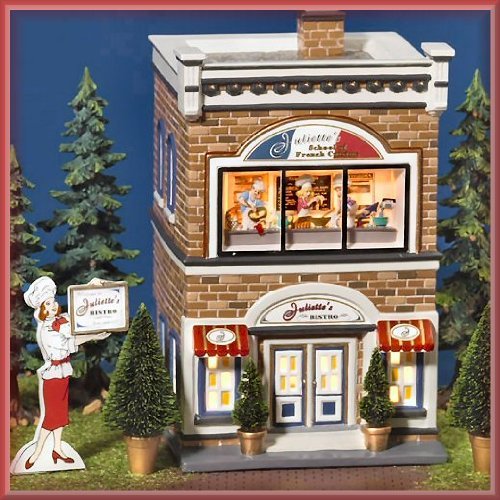 Studio : Department 56 Publisher : Department 56 Binding : Kitchen Product Description Four piece gift set includes: "Juliette's School Of French Cuisine" porcelain lighted building, "Bistro Sign" accessory which can be personalized, and two potted shrubs.