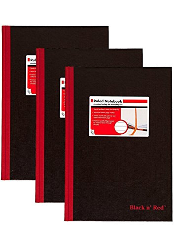 Black n' Red Hardcover Executive Notebook, 11.75 x 8.25 Inches, Black, 96 sheets/192 pages, 3 Pack