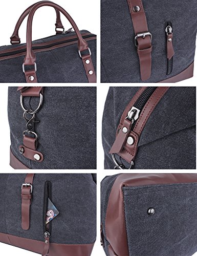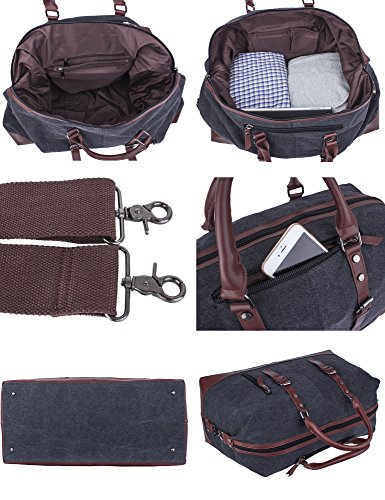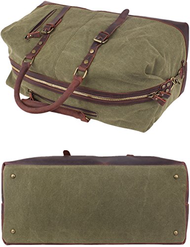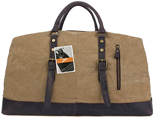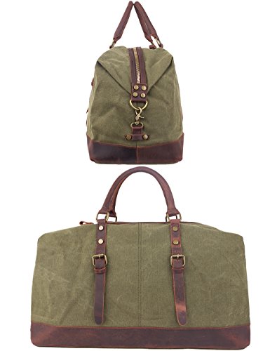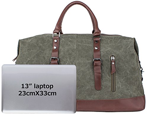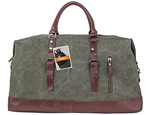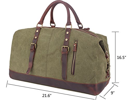 -. Brand : Leaper -. Department : unisex-adult (novelty and lage only) -. Feature : Material: High quality canvas bag + Genuine leather straps + Smooth Zipper. The duffel bag is classic military style. The canvas is heavy and durable, the base and handles are leather sewn and attached with rivets. The main zipper has heavy duty nylon teeth zipper and a metal tab. / Size: 54cm*40cm*23cm(L*H*D)/21.2''*15.6''*9''(L*H*D). Large Capacity: 55L. It is larger than a normal gym bag, but the size is perfect for a weekend bag and approximately the maximum size of a carry-on bag.It is the perfect size to carry your family clothes and essentials for an overnight or weekend trip. It also works as a spare bag that can be packed away in a suitcase and then used to carry back family gifts from a trip or vacation; Weight: 1600g. / The travel bag is a reliable, well built, classically designed weekender and the construction is fantastic. The inside of the bag is lined with a woven material. The large compartment can put a laptop, iPad, notebooks and clothes; Two inside zipper pockets can store small items without having them roll around inside the large compartment; Two open pockets for organization; Two external pockets can easily hold a phone, passport, tickets and other essentials for a trip. / The duffel has top notch construction. There is a leather tip detail around the bottom of the bag. The bottom is canvas with meta studs for feet. The bag also has a detachable wide adjustable canvas strap that can be used as a shoulder bag to carry the bag over a shoulder if desired. / Note: The crazy-horse leather has disordered scratches on the surface, which is the style of retro and wildness. When you scrape it widely, the trace will be appeared and you can wipe it gently, then the trace will be less. In addition, it has a natural smell of leather when open the package firstly, but the smell will fade gradually. If you cannot accept the trace and smell, don't place orders. -. ProductGroup : Apparel -. ProductTypeName : LAGE -. Title : Leaper Canvas Travel Duffel Bag Weekender Extra Large Tote Satchel Handbag