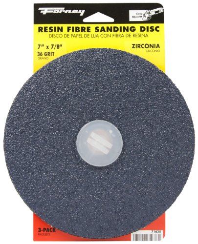 Forney 71638 Sanding Discs, Blue Zirconium with 7/8-Inch Arbor, 7-Inch, 36-Grit, 3-Pack