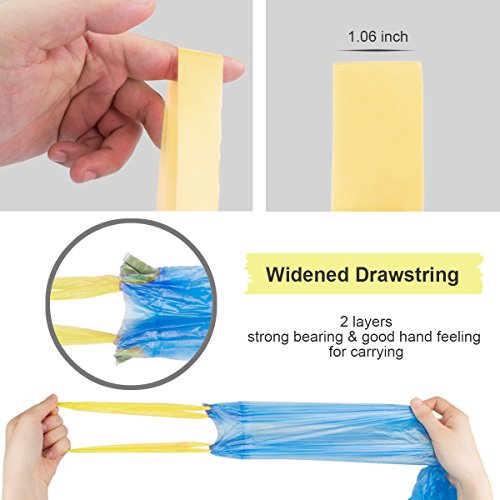 - ★SUPER STRONG DRAWSTRING: The two-layer drawstring ensures easy opening and closing. The strong built-in drawstring make it easy to lift, tie, carry and toss away. Keep your hands clean.